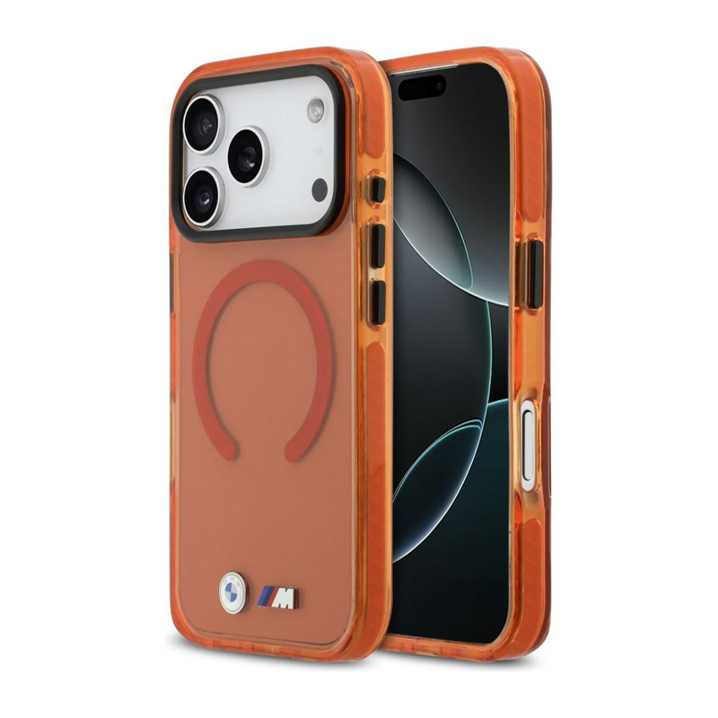 Maska BMW M IML Shockproof Metal Logos MagSafe za iPhone 17 Pro narandzasta